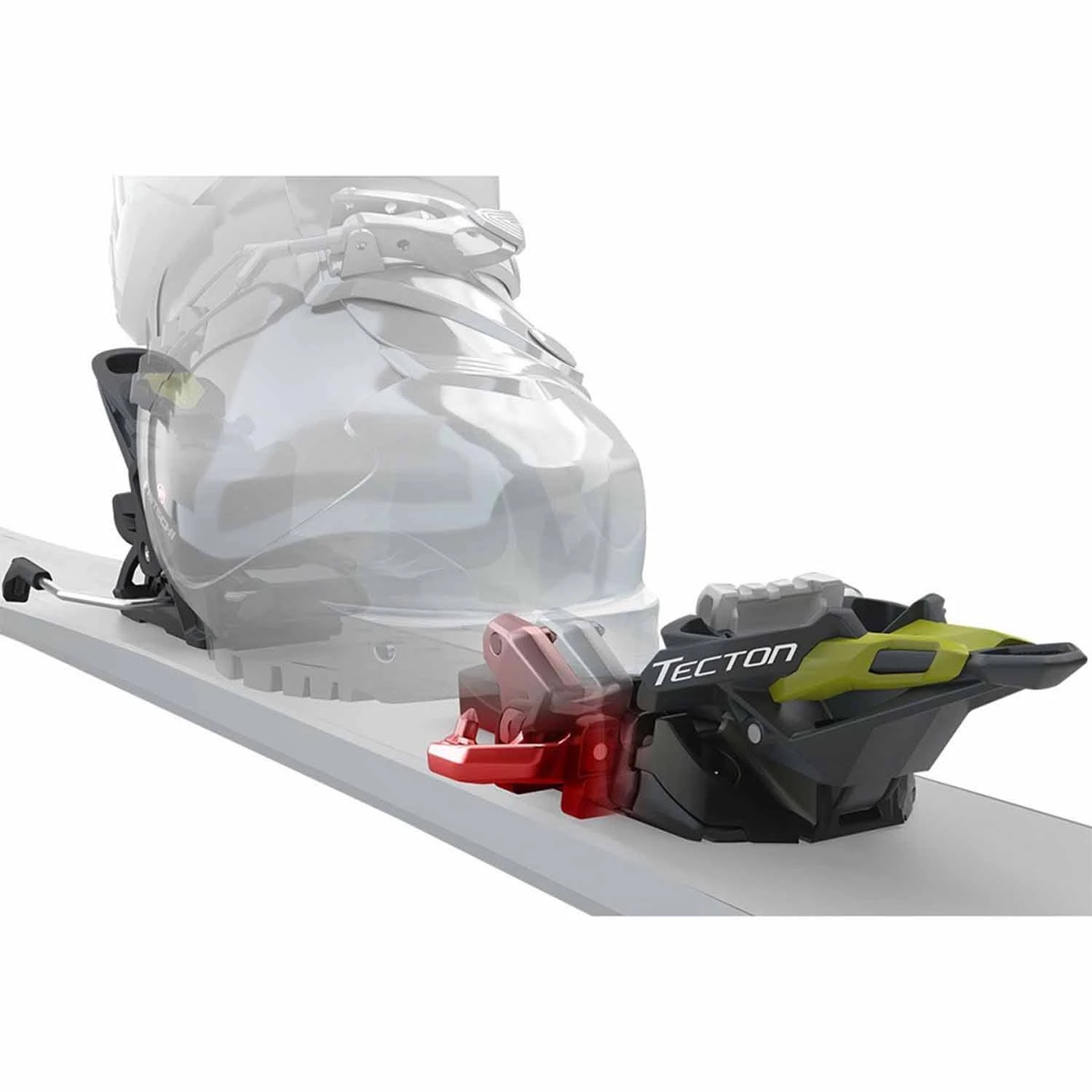 In the back, where the forces are highest, the Tecton remains as stable and precise as an alpine binding. The hold-down system with a non-turning alpine heel jaw and the rail transmits the power directly from the boot to the ski without any loss. The Tecton equals both the performance and the safety of alpine bindings. Any unwanted release is prevented by the long dynamic path. The binding reliably releases at the DIN setting. The easy step-in and the intuitive control provide security, especially in challenging terrain. The right mix of light high-tech synthetics and high-quality metal alloys provides superior stability at a low weight (only 550 g / unit).